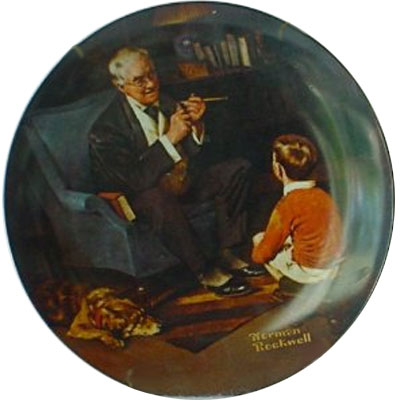 Sixth in the Rockwell Heritage Collection. Made in a limited edition permanently closed in 1982 by Knowles and certified as a "TRU ROCKWELL CLASSIC" by the Rockwell Society of America.
